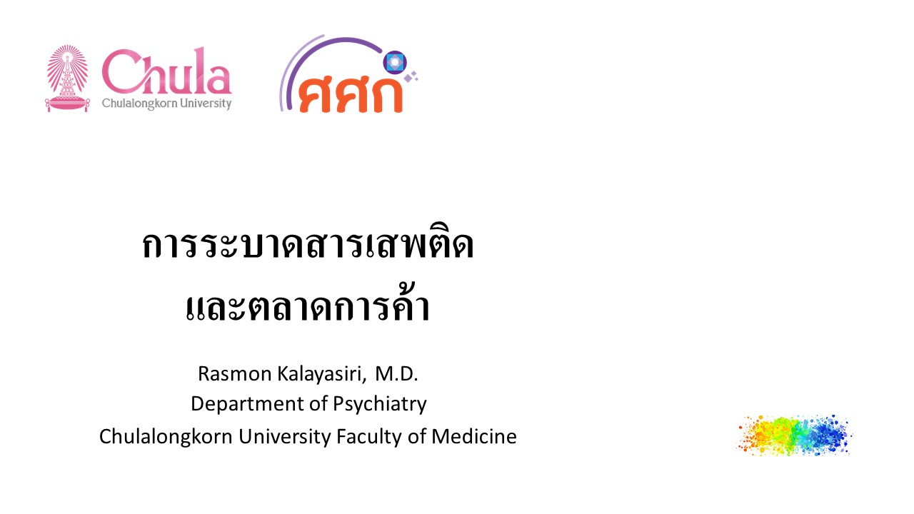 1. การระบาดสารเสพติดและตลาดการค้า โดย รศ.พญ.รัศมน กัลยาศิริ คณะแพทยศาสตร์ จุฬาลงกรณ์มหาวิทยาลัย ผู้จัดการศูนย์ศึกษาปัญหาการเสพติด