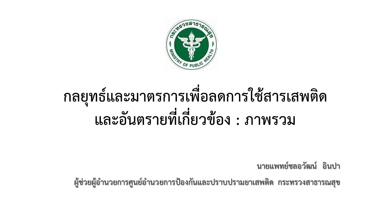4. กลยุทธ์และมาตรการเพื่อการลดการใช้สารเสพติดและอันตรายที่เกี่ยวข้อง โดย นพ.ชลอวัฒน์ อินปา ผู้ช่วยผู้อำนวยการศูนย์อำนวยการป้องกันและปราบปรามยาเสพติด กระทรวงสาธารณสุข