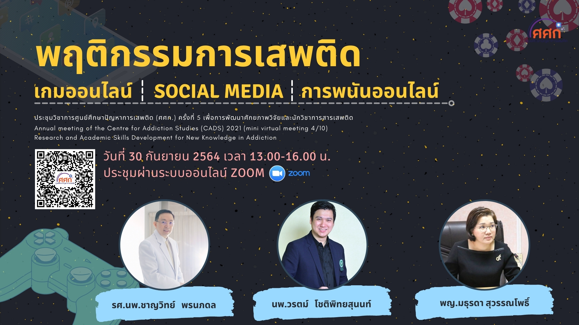 - ประชุมวิชาการ: เพื่อการพัฒนาศักยภาพการวิจัย และนักวิชาการการเสพติด ครั้งที่ 3 (ผ่านระบบออนไลน์ Zoom)