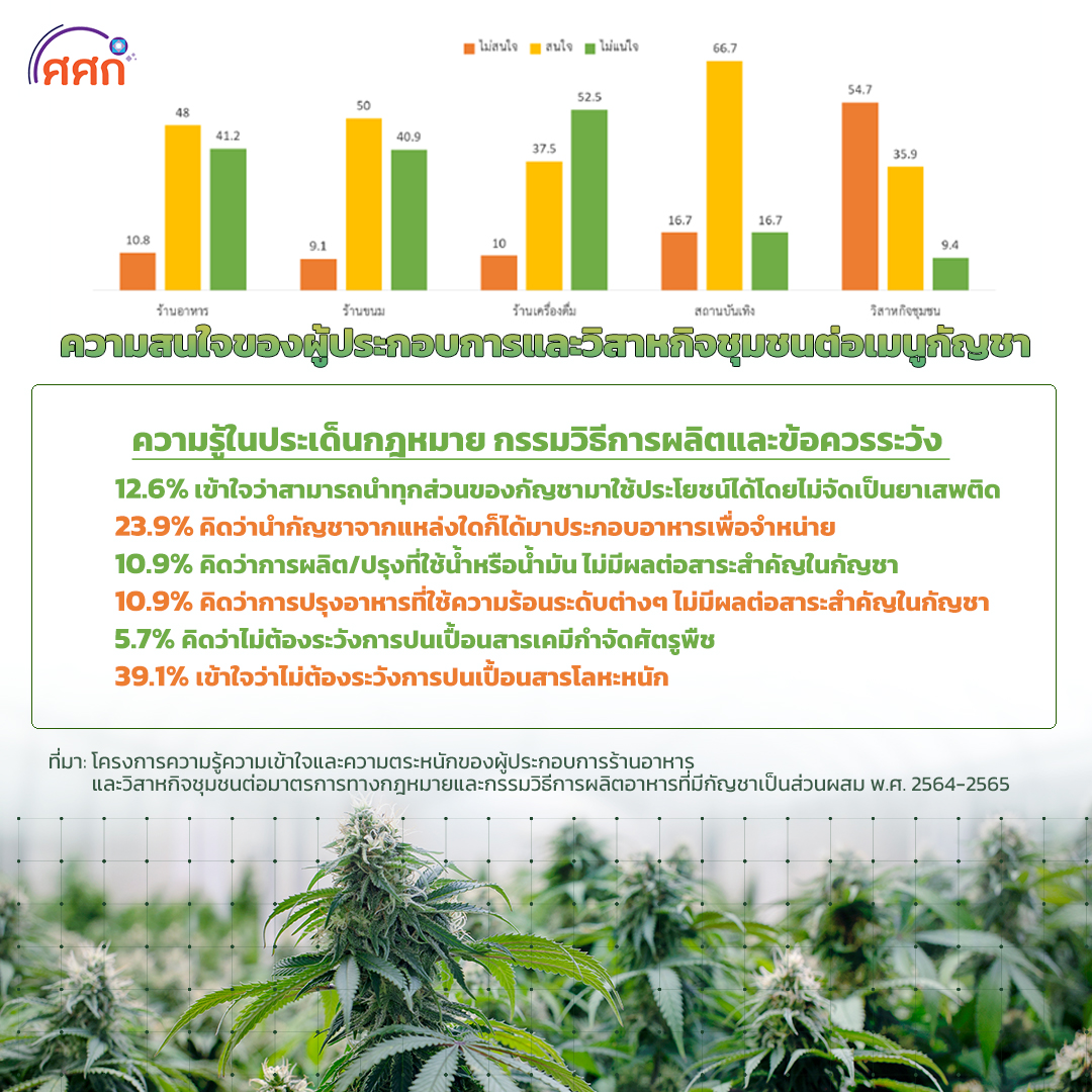 รายงานวิจัย ความรู้ความเข้าใจและความตระหนักของผู้ประกอบการร้านอาหารและวิสาหกิจชุมชนต่อมาตรการทางกฎหมายและกรรมวิธีการผลิตอาหารที่มีกัญชาเป็นส่วนผสม