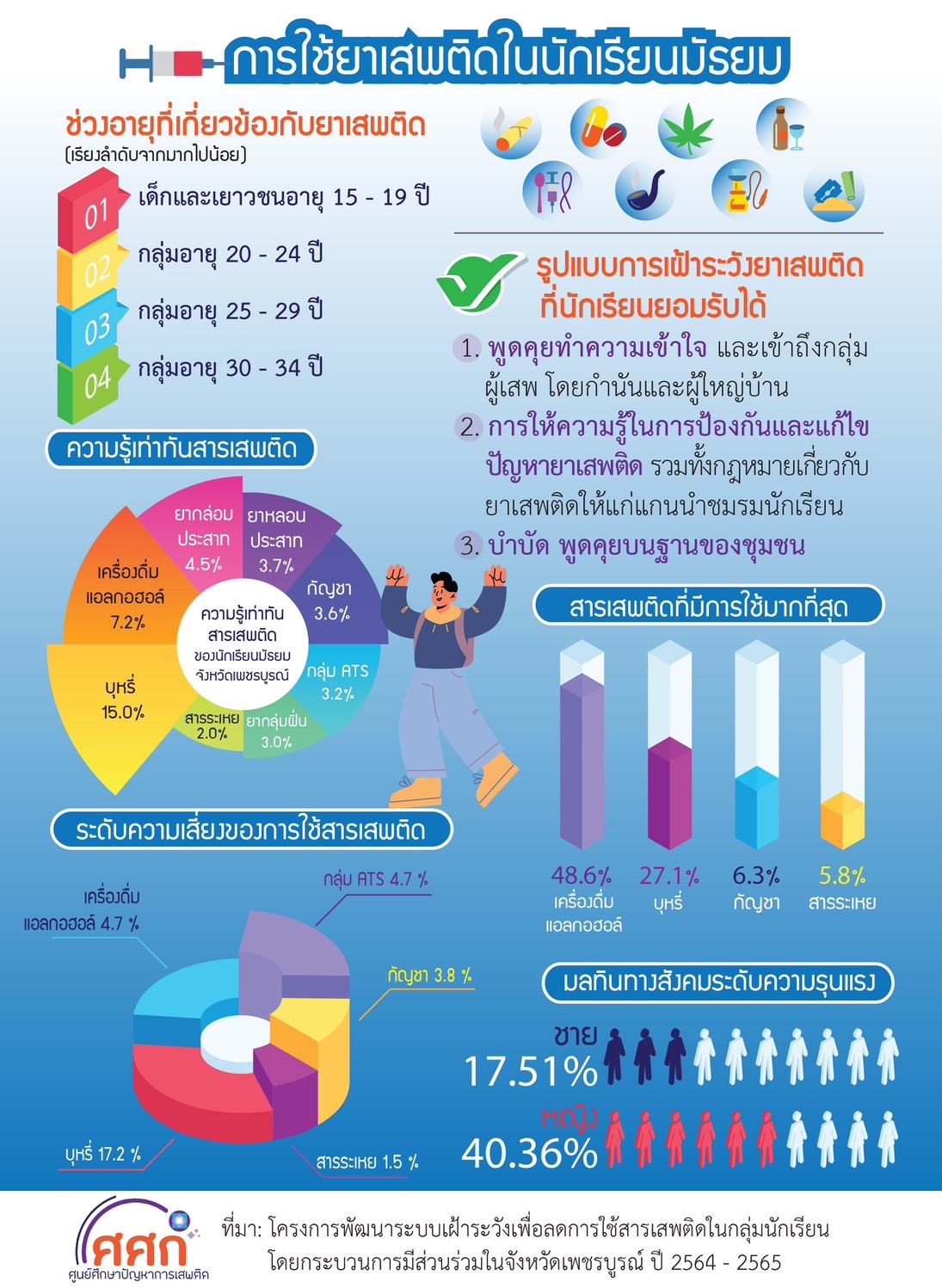 ที่มา: โครงการพัฒนาระบบเฝ้าระวังเพื่อลดการใช้สารเสพติดในกลุ่มนักเรียน โดยกระบวนการมีส่วนร่วมในจังหวัดเพชรบูรณ์ ปี 2564-2565